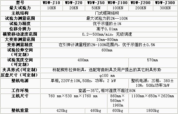 產(chǎn)品概述: WDW-J系列電子式萬能試驗機主機與輔具的設計融匯了我公司的先進技術,電子萬能拉伸壓縮彎曲試驗機,外形美觀,操作方便,2噸電子萬能試驗機,性能穩(wěn)定可靠。系統(tǒng)通過全數(shù)字控制器,經(jīng)調(diào)速系統(tǒng)控 制伺服電機轉(zhuǎn)動,經(jīng)減速系統(tǒng)減速后通過精密絲杠副帶橫梁上升、下降,電子萬能試驗機的種類,完成試樣的拉伸力學性能試驗,無污染、噪音低,wdt電子萬能試驗機,效率高,電子萬能試驗機源峰,具有較寬的調(diào)速范圍。該機廣泛 應用于建筑建材、航空航天、機械制造、電線電纜、橡膠塑料、紡織、家電等行業(yè)的材料檢驗分析,30kn電子萬能試驗機,是科研院校、大專院校、工礦企業(yè)、技術監(jiān)督、商檢仲裁等部門 的理想測試設備。 功能特點: 1主機 1.1主機采用高鋼度門式框架結構,強度高、變形; 1.2 采用進口高精度滾珠絲杠,數(shù)顯電子萬能試驗機,傳動高效平穩(wěn); 1.3 傳動部分采用圓弧齒同步帶傳動,傳動過程中雙向無間隙; 1.4交流伺服電機保證傳動平穩(wěn),力矩穩(wěn)定,具有過流、過壓、過載等保護裝置; 1.5 夾具經(jīng)特殊設計,夾持牢固,100n電子萬能試驗機,操作方便,無鉗口滑移現(xiàn)象; 1.6 特殊工藝保證試驗機同軸度,電子萬能試驗機保養(yǎng),很好的消除了不規(guī)則試樣對傳感器的影響。 2控制系統(tǒng) 觸摸健操作方式,30噸電子萬能試驗機,液晶顯示器實時顯示,克服了老式數(shù)碼管顯示容易發(fā)生故障的難題,并且美觀大方、方便快捷。 技術參數(shù):